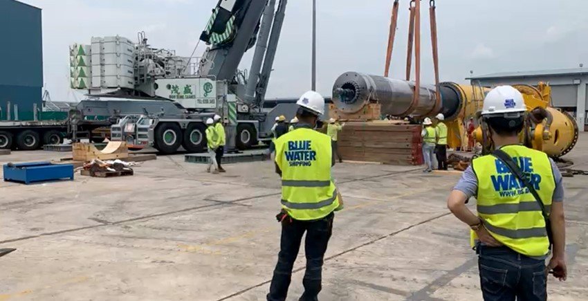 Blue Water’s comprehensive scope included the receiving of the ram weight from Japan and shipping and receiving of the MHU3500S hydraulic hammer from Hamburg, Germany. It also included the installation of spring suspension into the ram weight and the assembly of the ram weight as part of the hydraulic hammer. The assembly took place in Singapore.