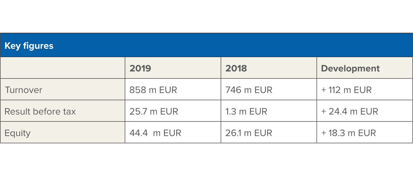 The annual accounts for Blue Water Holding, which comprises the transport group’s total activities, showed a magnificent profit of 25,7 m EUR before tax for 2019. This is an improvement of just over 24 m EUR compared to last year, where the result before tax was 1,3 m EUR. The turnover increased by DKK 112 m EUR and consequently rose from 746 m EUR to 858 m EUR which is a 15 percent rise.